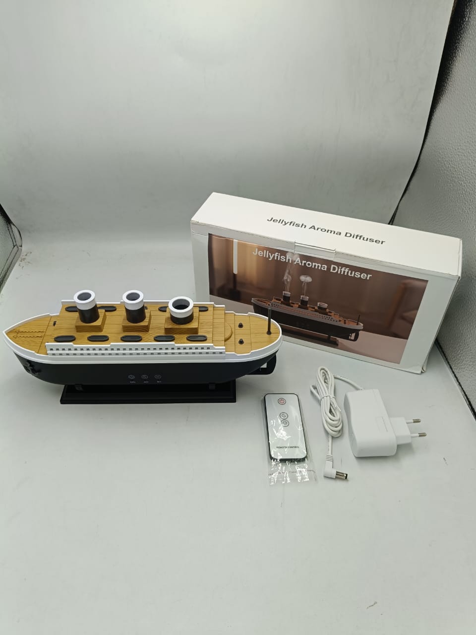 The Jellyfish Aroma Diffuser is a stylish, ship-shaped humidifier and diffuser that combines functionality with unique home décor. Designed to resemble a classic cruise ship, it releases aromatic mist through its chimney outlets, creating a relaxing and visually pleasing atmosphere. Perfect for bedrooms, living rooms, or office spaces, it helps improve air quality while adding a decorative touch.